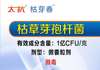 太抗系列生物農(nóng)藥介紹——枯芽春篇發(fā)布日期:2016.03.02點(diǎn)擊量:8096一、產(chǎn)品特點(diǎn)特點(diǎn):我國唯一正式登記為微膠囊劑的生物殺菌劑,重點(diǎn)用于土傳病害防治,尤其是對枯萎病防治,促進(jìn)根系生長;食品安全性:毒性低于食鹽,有機(jī)認(rèn)證在辦理中;農(nóng)作物安全:對作物安全無藥害。 二、枯草芽孢桿... -