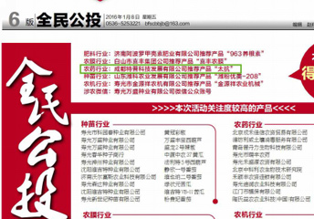 恭祝太抗?榮獲“2015我最信賴的農(nóng)資品牌”得票最高產(chǎn)品發(fā)布日期:2016.01.11點(diǎn)擊量:6307“金杯銀杯,不如用戶體驗之后的口碑”,2015年12月由北方蔬菜報主辦的“2015全民公投—我最信賴的農(nóng)資品牌”活動在微信客戶端和手機(jī)短信客戶端拉開帷幕,本次活動,旨在更好的服務(wù)企業(yè)、經(jīng)銷商和菜農(nóng),通過集贊廣大... -