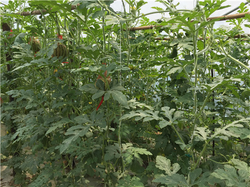 在紅巖鎮(zhèn)政府的推薦下,合作社從今年3月15日西瓜苗移栽后開(kāi)始全程使用太抗幾丁聚糖植物誘抗劑、太抗枯芽春枯草芽孢桿菌、太抗木子美哈茨木霉菌等一系列生物農(nóng)藥用于防治病害。至5月下旬,共施藥6次,病害得到有效控制。期間發(fā)生了蔓枯病和枯萎病,用太抗-幾丁加太抗-枯芽春兩次之后明顯控制住了病情,無(wú)病毒病發(fā)生。