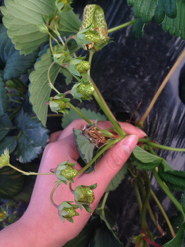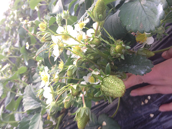 1月5日拍攝,用藥1次后,草莓長(zhǎng)勢(shì)明顯變好,掛果也多了