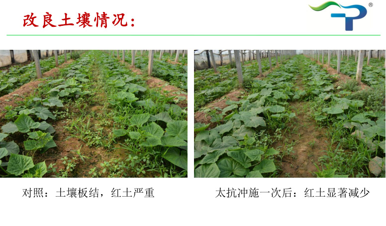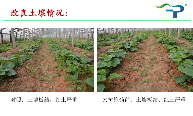 去年,太抗“枯芽春+木每靈”組合在山東區(qū)域的辣椒根腐病、豇豆莖基腐等病害上表現(xiàn)突出,得到種植戶與零售商的一致好評,給予其“枯木逢春”組合的美譽(yù)。今年,小抗的同事們結(jié)合公司土壤改良產(chǎn)品——土蘇,在山東青州某土壤板結(jié)嚴(yán)重的大棚黃瓜上,再次驗(yàn)證了“枯木逢春”組合的神奇!